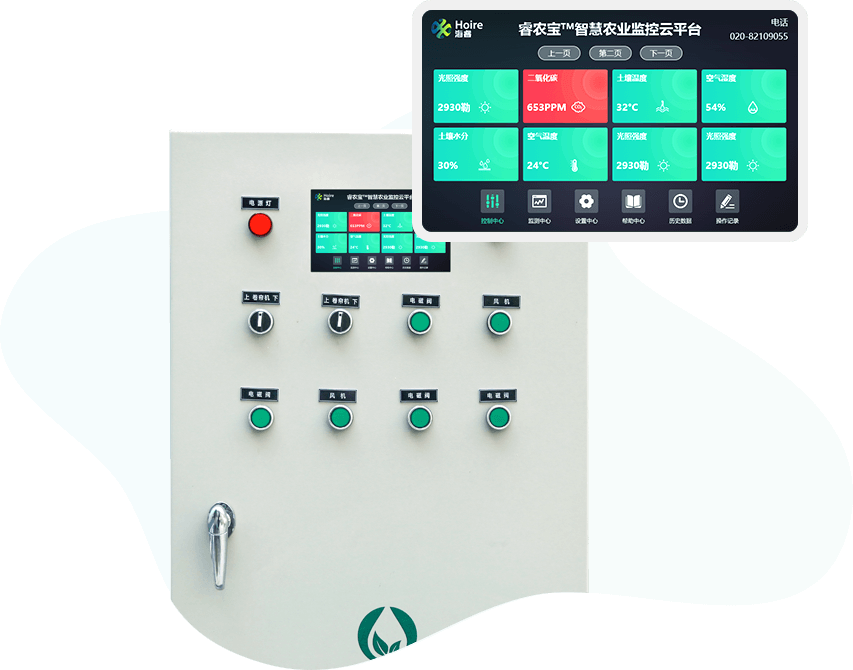 結(jié)合“睿農(nóng)寶”環(huán)境監(jiān)測系統(tǒng),可以實時展示環(huán)境數(shù)據(jù)與設(shè)備運行狀態(tài)。每一個設(shè)備都有獨立的控制開關(guān),支持多路設(shè)備的控制(4/8/16路)。