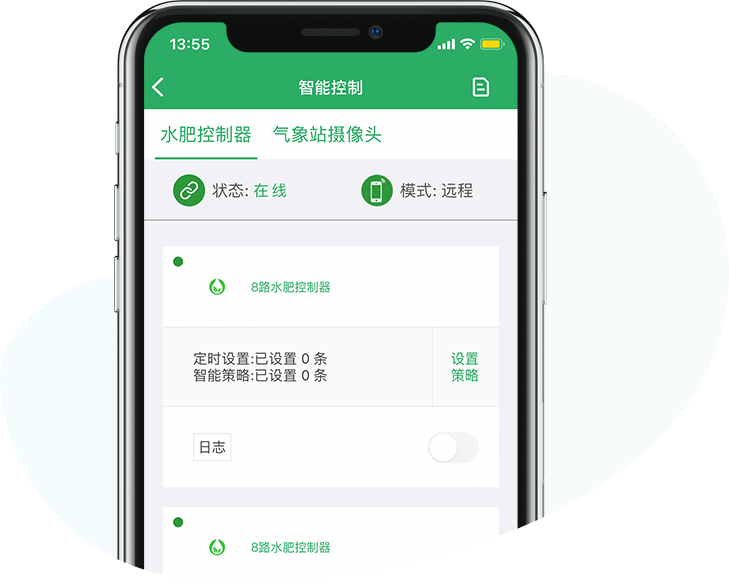 通過睿農(nóng)寶APP,可以對設(shè)備進(jìn)行遠(yuǎn)程控制。同時還可以通過APP設(shè)置智能控制策略,可以實現(xiàn)定時、定點的控制設(shè)備。結(jié)合“睿農(nóng)寶”環(huán)境監(jiān)測設(shè)備,還可以根據(jù)現(xiàn)場環(huán)境情況進(jìn)行智能控制。例如當(dāng)溫度過高時打開風(fēng)機(jī),當(dāng)光照不足時打開日光燈等,實現(xiàn)自動化生產(chǎn)管理。