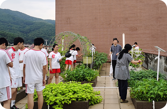 針對校園光照條件、排水系統、屋頂承重等進行全面評估,根據空間的特點和農作物的生長需求,進行科學規劃、精細設計達到高效空間利用。